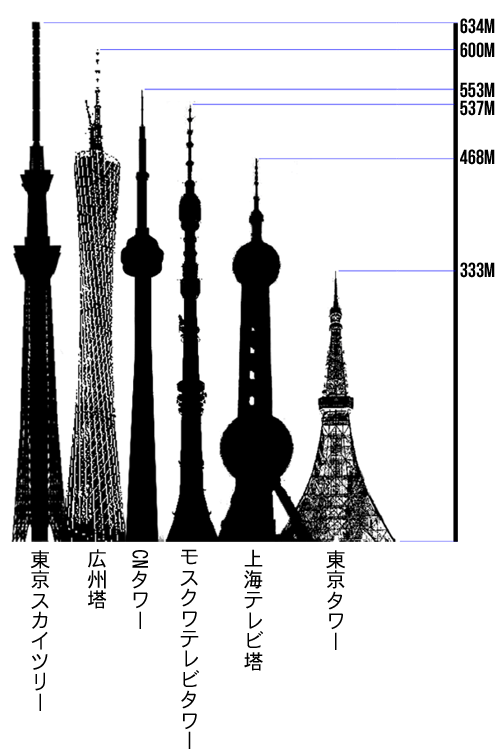 電波塔高さ比べ 図解 東京スカイツリー入り 世界のクテキー ウェブサイト
