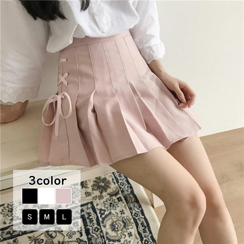 スカート ミニスカート ミニ丈 プリーツスカート サイドリボン かわいい 無地 ボトムス 春夏秋 Yar2523 月島 通販 Yahoo ショッピング