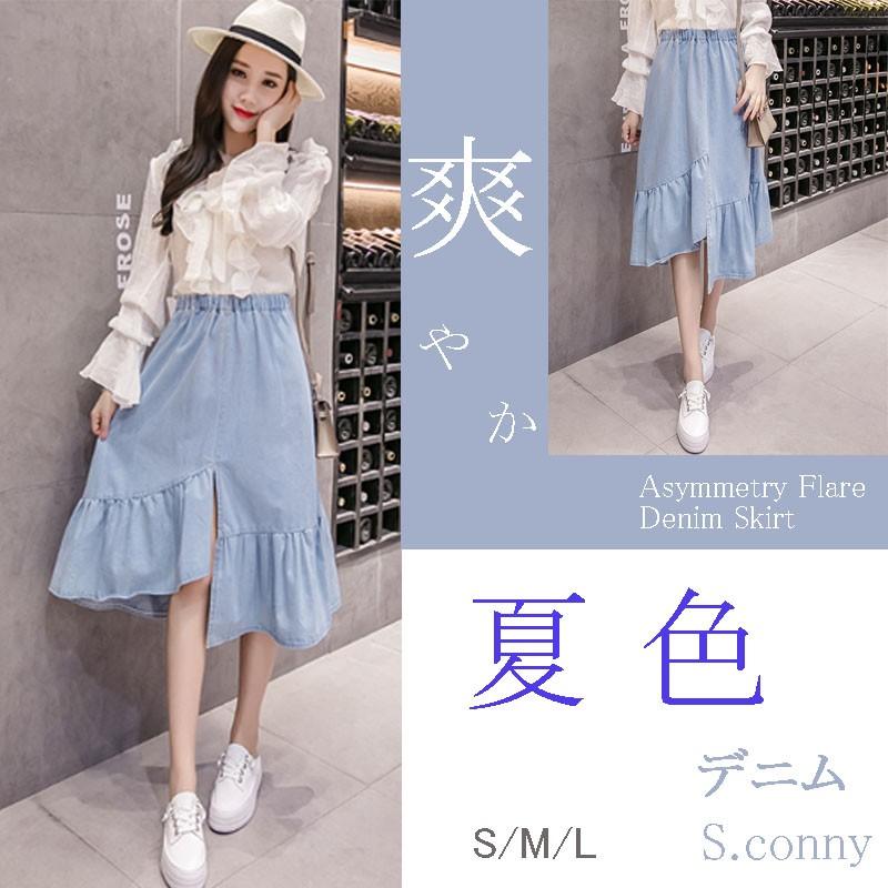 スカート ロング 夏 レディース 膝丈 フレア デニム 20代 10代 高校生 女子 ティーンズファッション 流行 かわいい カジュアル 韓国 S009 S Conny 通販 Yahoo ショッピング
