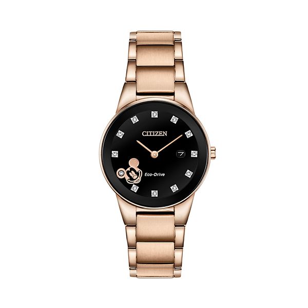 Citizen Mickey Mouse Ladies Eco Drive Rose Gold Black Dial Watch Citizen