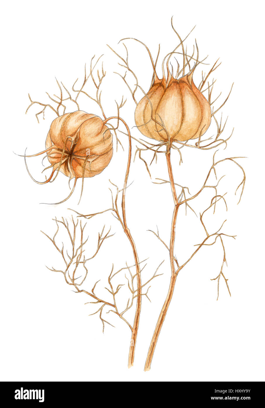 Love In A Mist Nigella Damascena Mature Dry Fruits Botanical Stock Photo Alamy