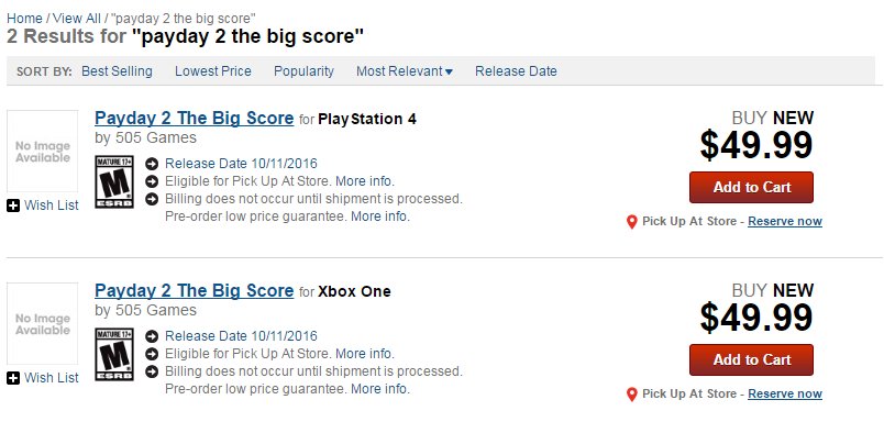 Payday 2 The Big Score Console Listing Spotted On Gamestop S Website